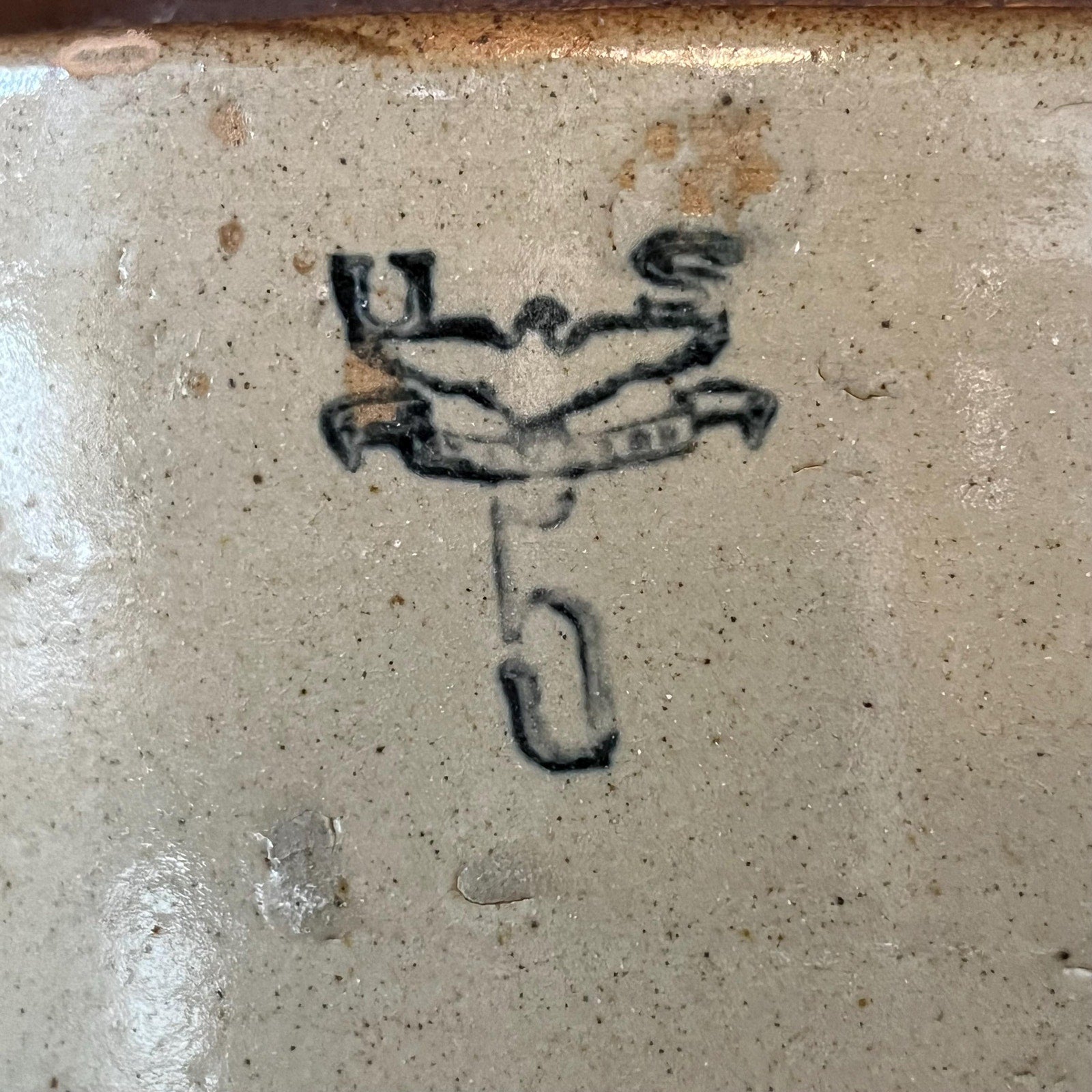Antique 5 Gallon Blue U S Eagle Stamped Stoneware Jug - Whiskey Crock - Moonshine Crock - Brown and Beige Stoneware Crock