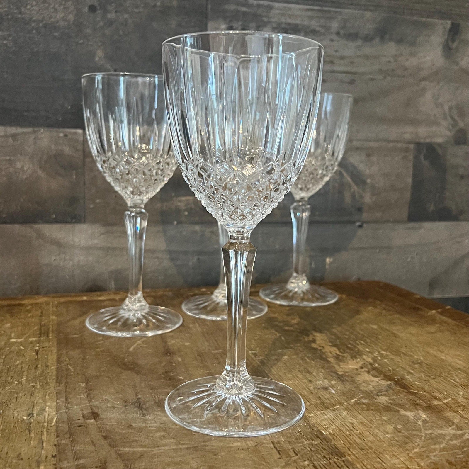 This Cristal D'Arques Durand Constance Plain Water Goblets - Set of 4 will look lovely on your tabletop! Perfect for serving up water, wine, juice and your favorite drink of choice! Each measures about 7 1/2 inch tall x 3 1/4 inch wide.