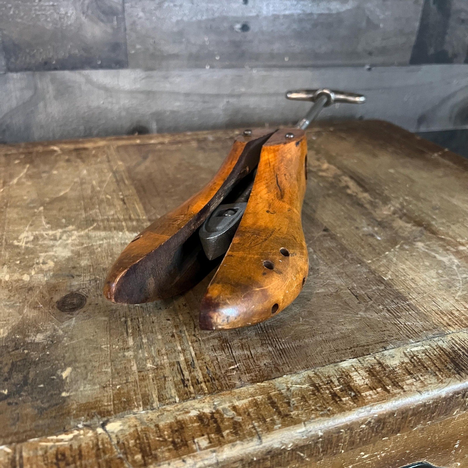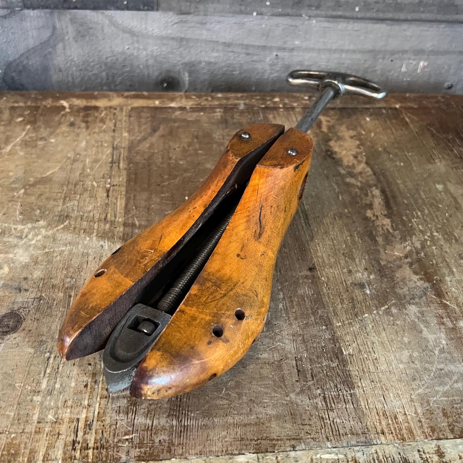 George E. Belcher Antique Wood and Metal Shoe Cobbler Stretcher Stamped 2