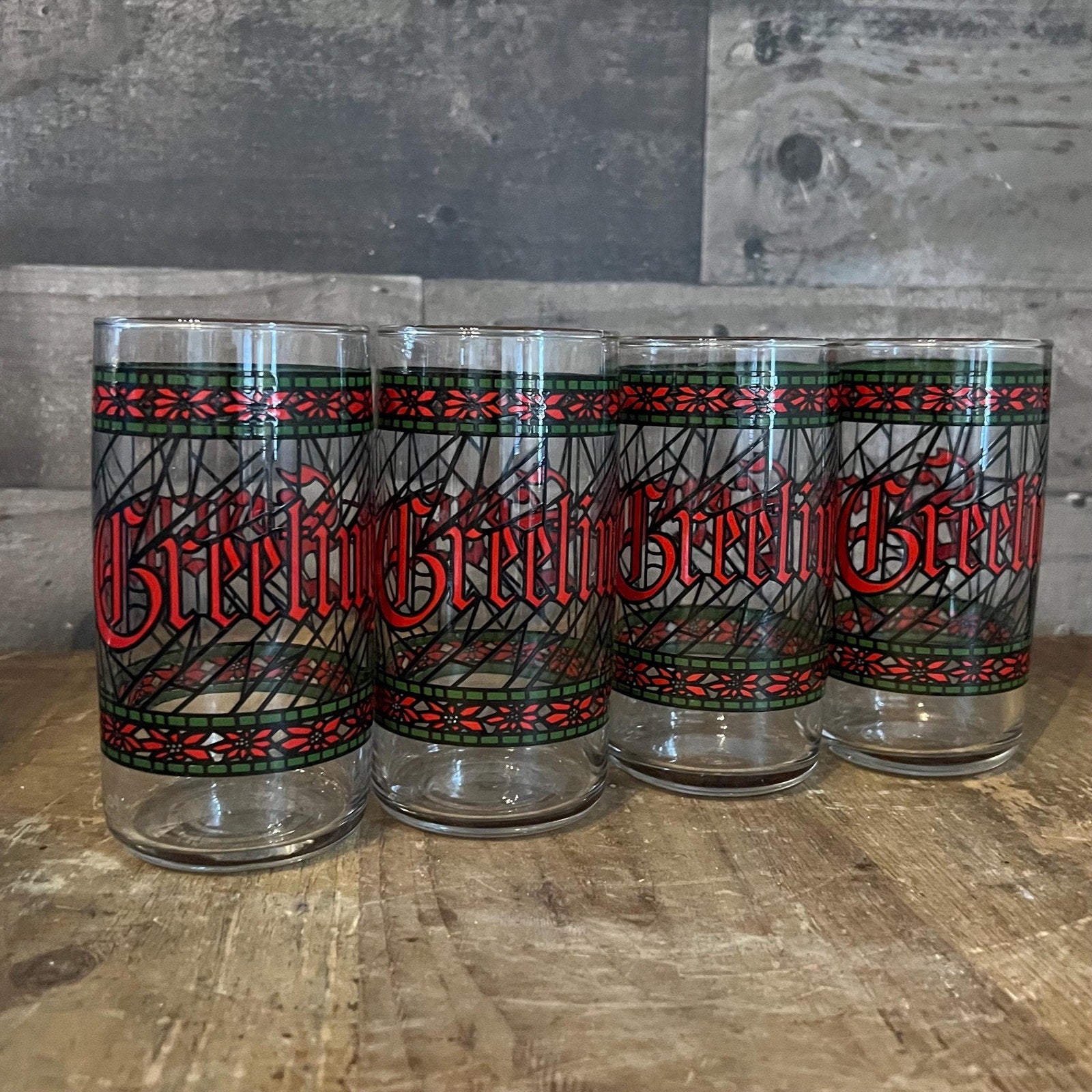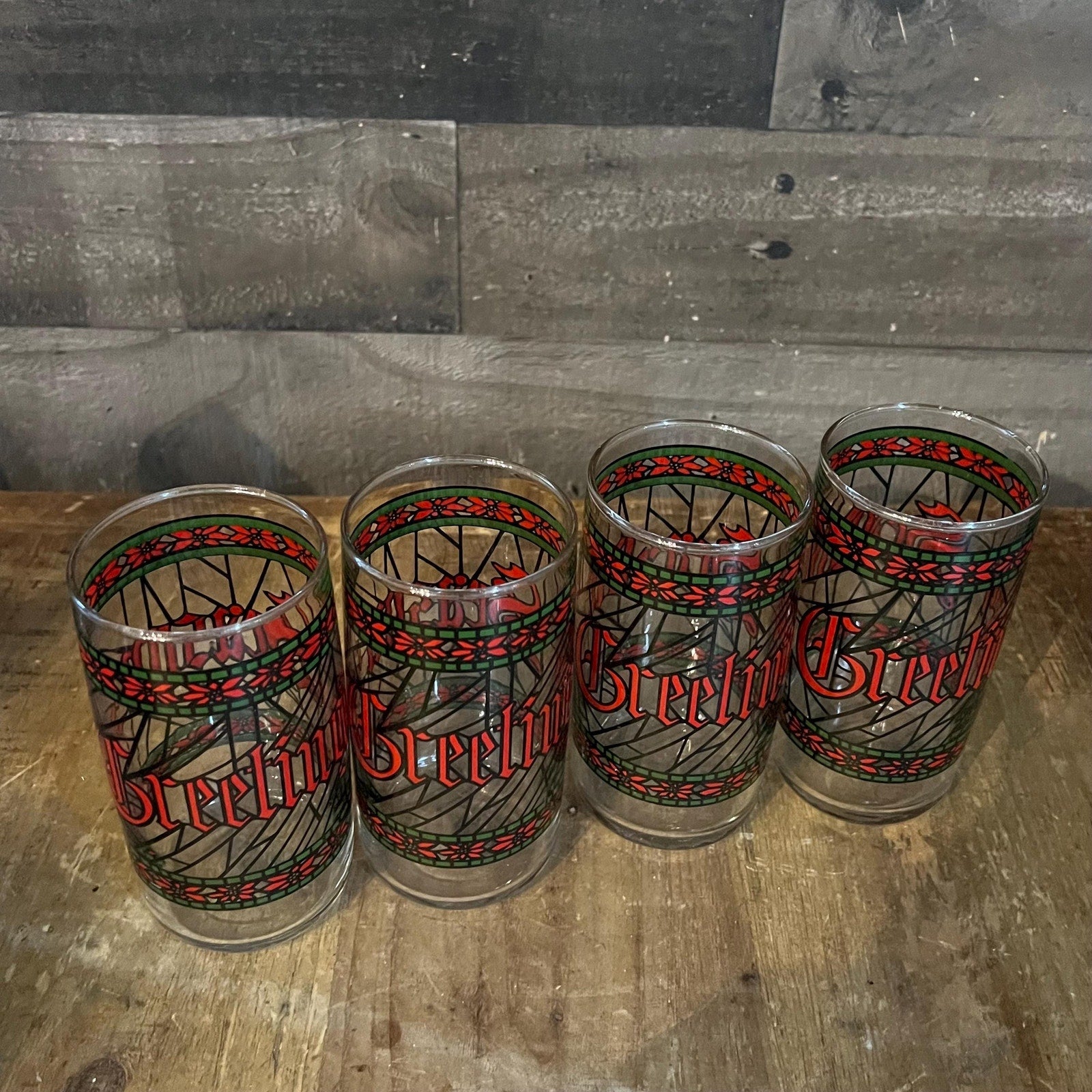 Houze Glass Company Seasons Greetings Tall Juice Glasses - Christmas Holiday Glassware - Set of 4