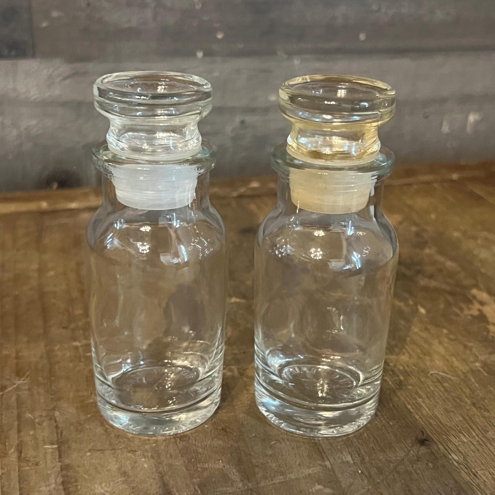 Pair of Vintage Small Clear Glass Lidded Apothecary Bottles - Spice Bottles - Pill Bottles
