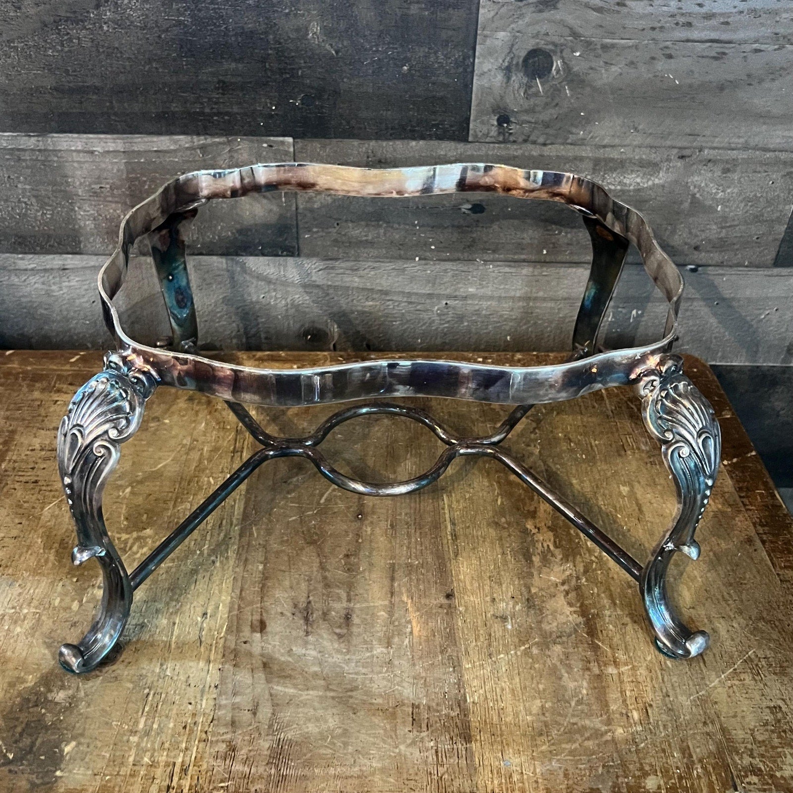 This Silverplated Old English Reproduction Oval Lidded Serving Dish Warming Chafing Dish will look absolutely spectacular in your space! Features a lovely floral accent round handle on the lid, scroll wavy rim, and tall legs on the warming stand! You will absolutely love the character it’s aged look brings! Stand measures about 14 inch wide x 6 1/2 inch tall x serving dish measures about 14 1/2 inch wide x 2 inch tall x lid measures about 12 inch wide x 6 inch tall x all together measures about 12 inch tall