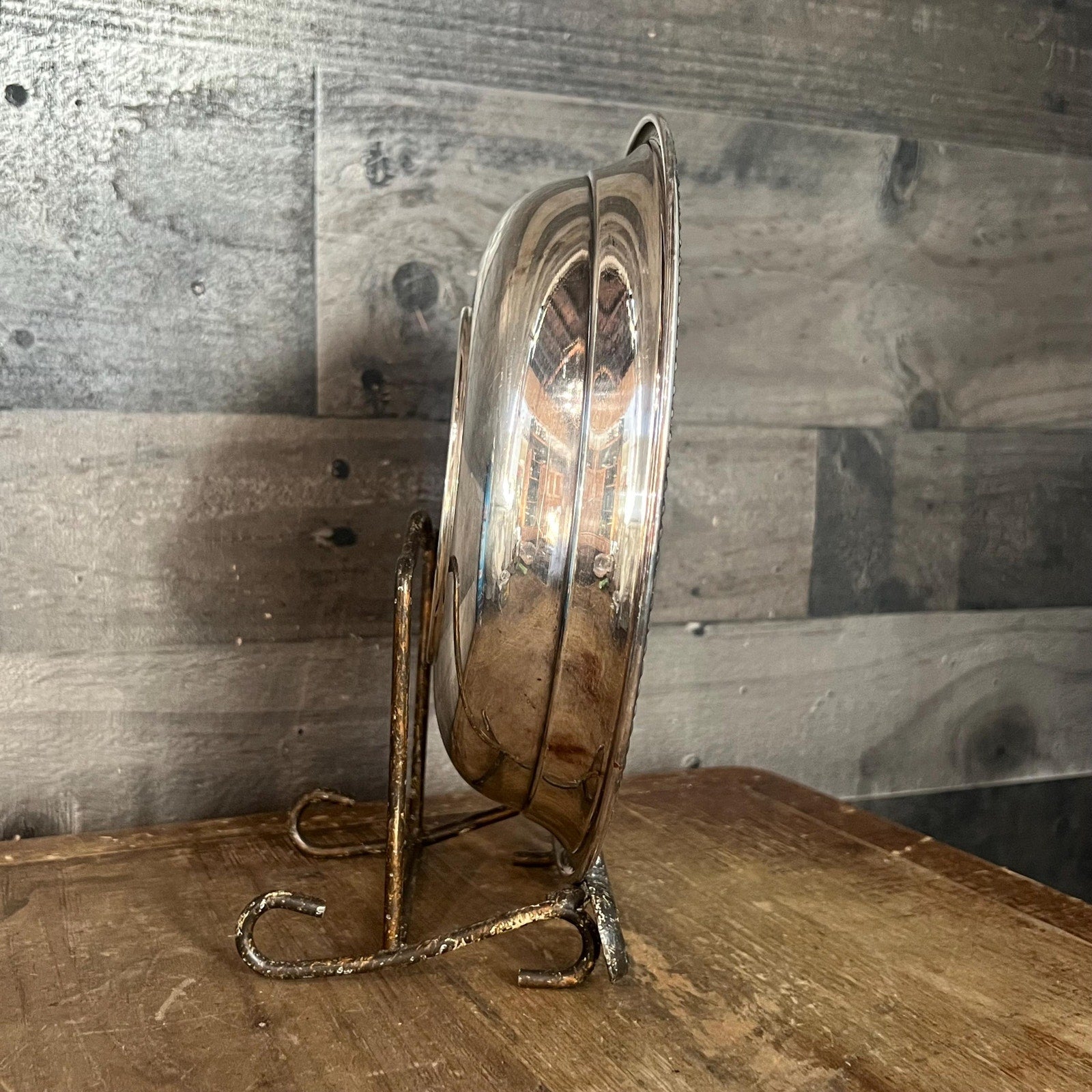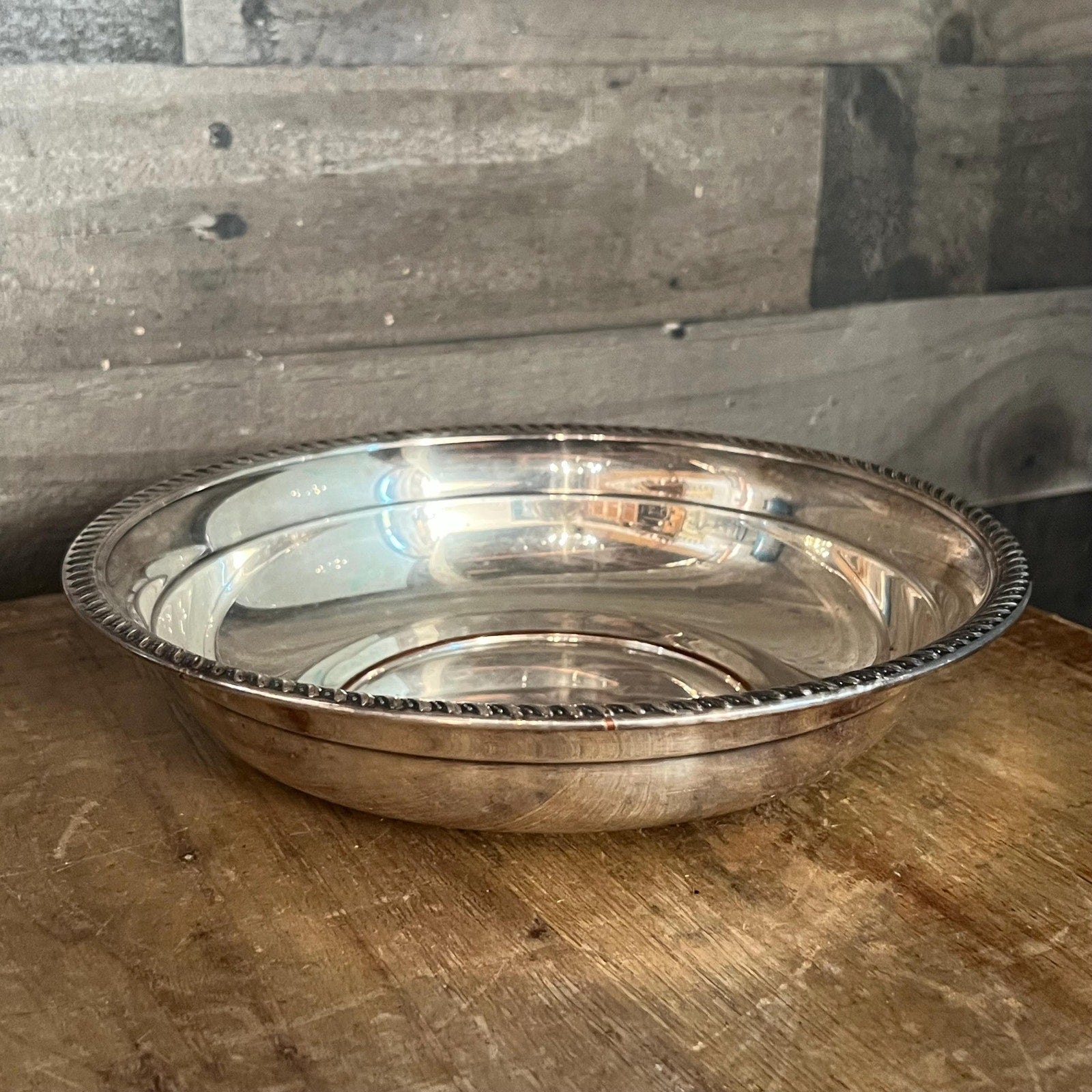 This Vintage Art S Co Round Silverplated Shallow Bowl with Braided Accent Rim will look wonderful in your space! Perfect for styling in your hallway, entryway, kitchen, living room, dining room, office and more! Makes a lovely entryway bowl, fruit bowl, purse bowl, catchall bowl, serving bowl - the list goes on! Measures about 9 inch wide x 2 inch tall