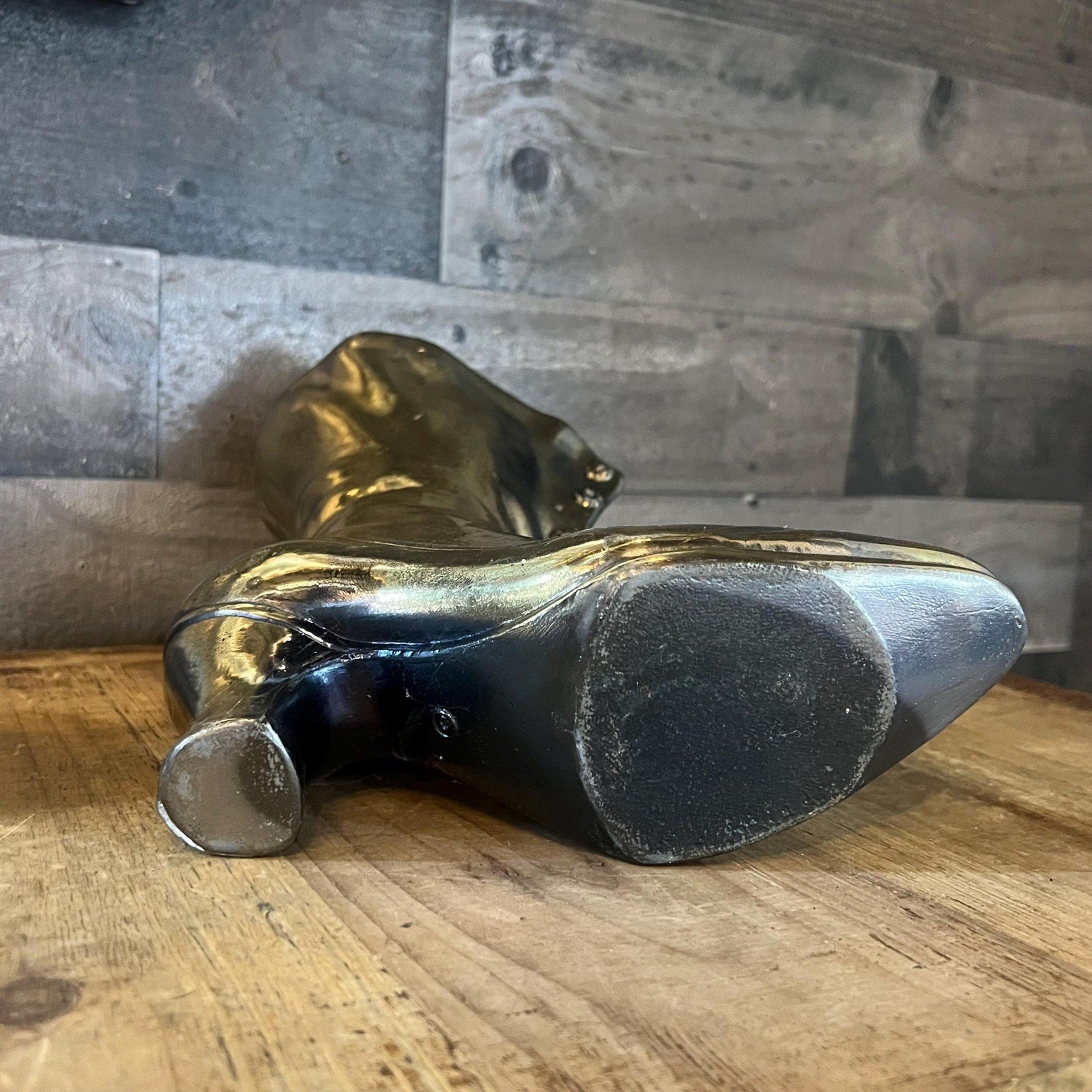 Vintage Brass Victorian Heeled Boot Planter Vase