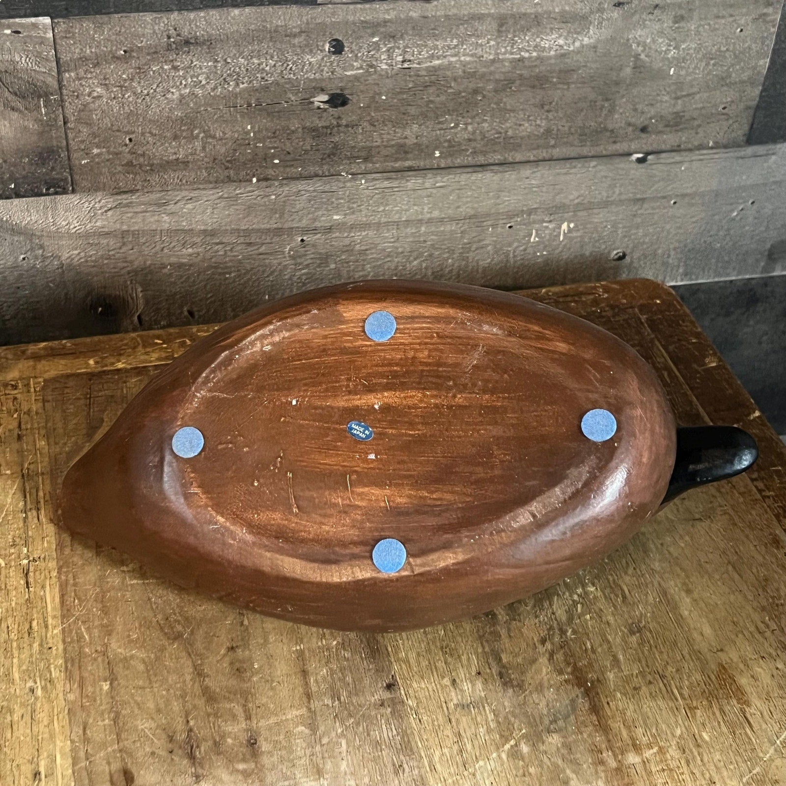 This Vintage Duck Bowl - Duck Planter / Vase will look lovely in your space! Makes a wonderful piece of decor as well as a candy dish, vase or planter to showcase your favorite flowers or plant, catchall dish, a vessel for your tissues - the list goes on! It has the appearance of wood but is made of ceramic. Amazing for a lake house, camp or cabin, as well as the duck lover in your life! Great for showcasing in your hallway, entryway, living room, office, bedroom, bathroom and more! Measures about 12 inch wide x 5 1/2 inch deep x 5 inch tall x opening is 3 1/4 inch wide x 4 inch wide.