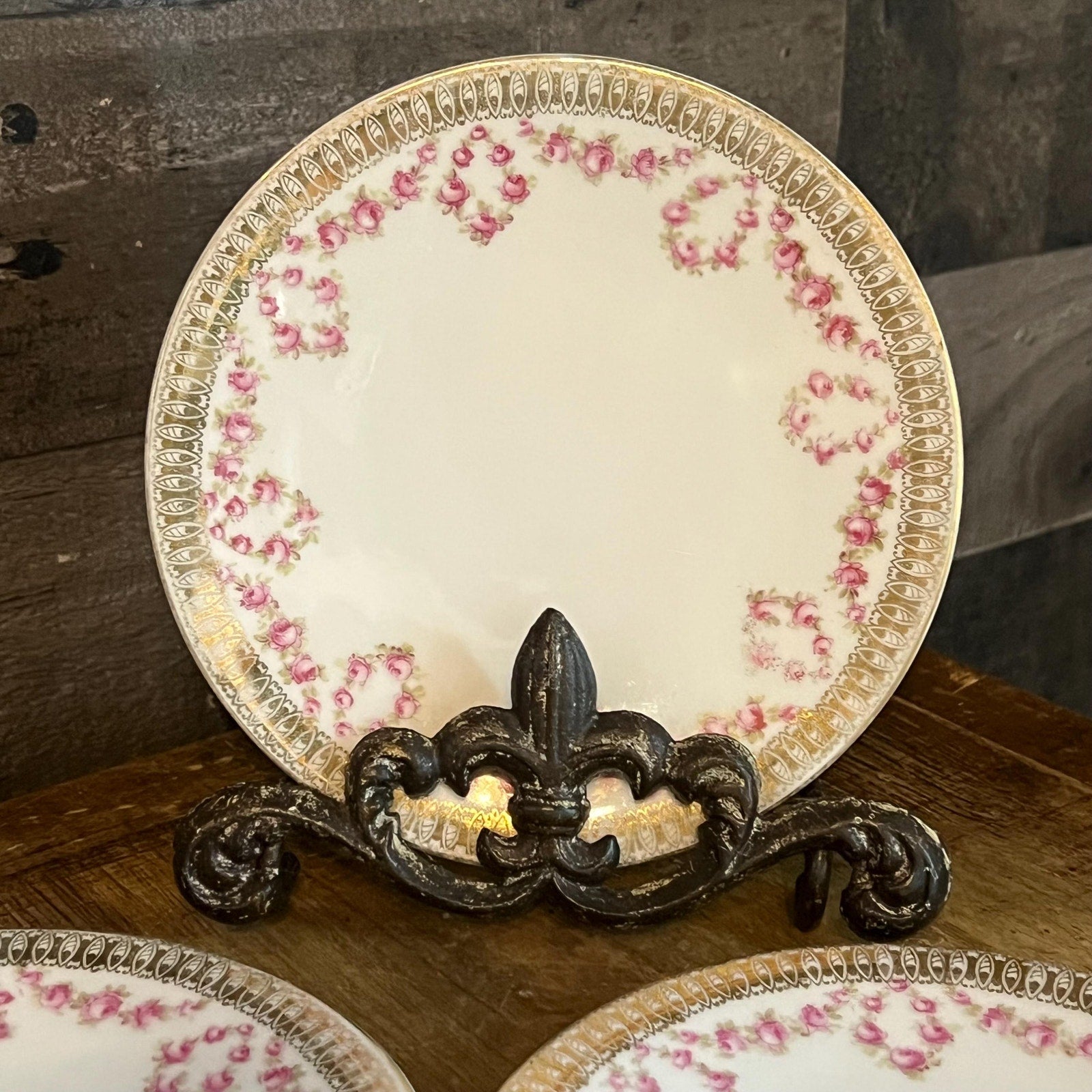 Vintage Hohenzollern Wittelsbach German Bavarian China Pink Gold Floral Small Plates - Set of 5