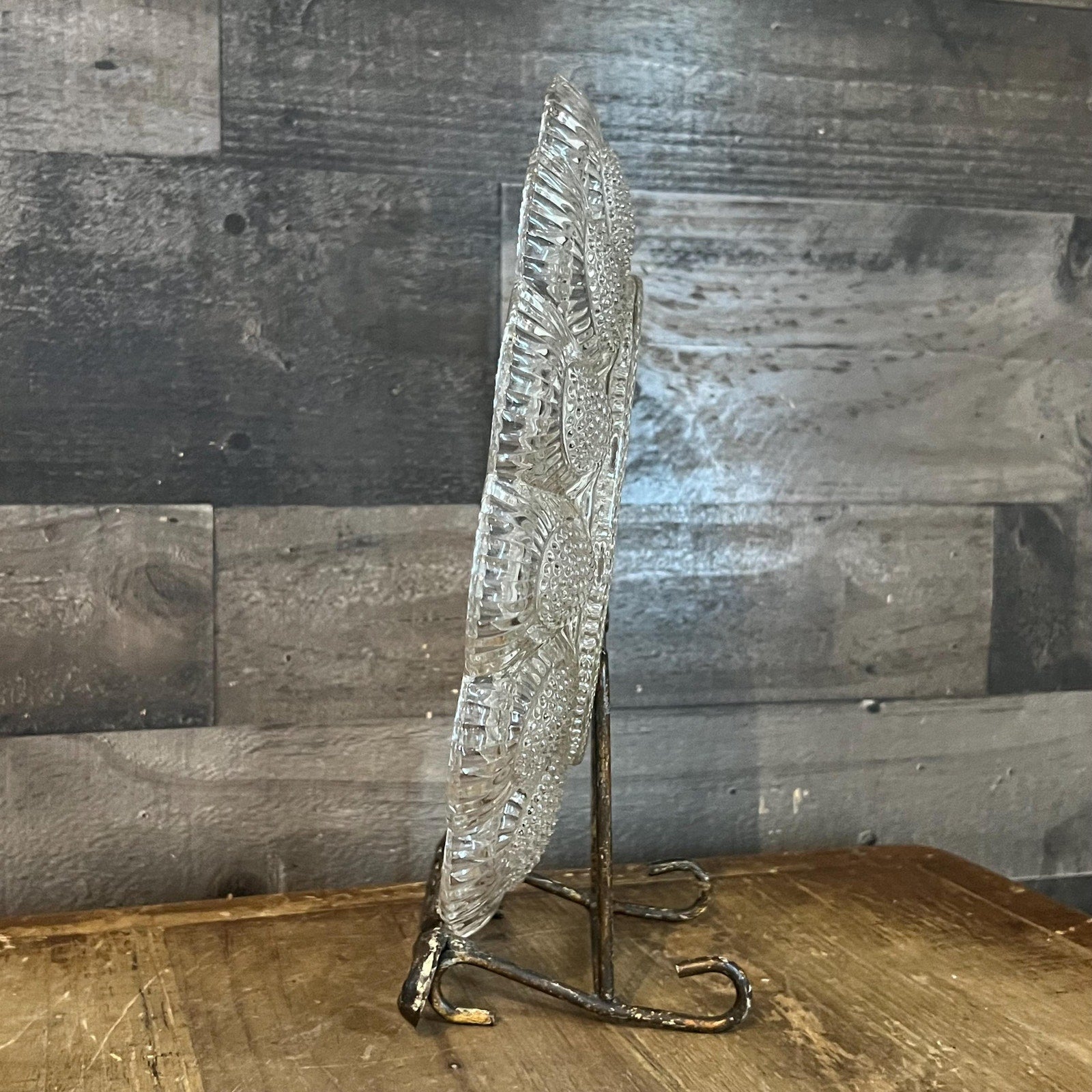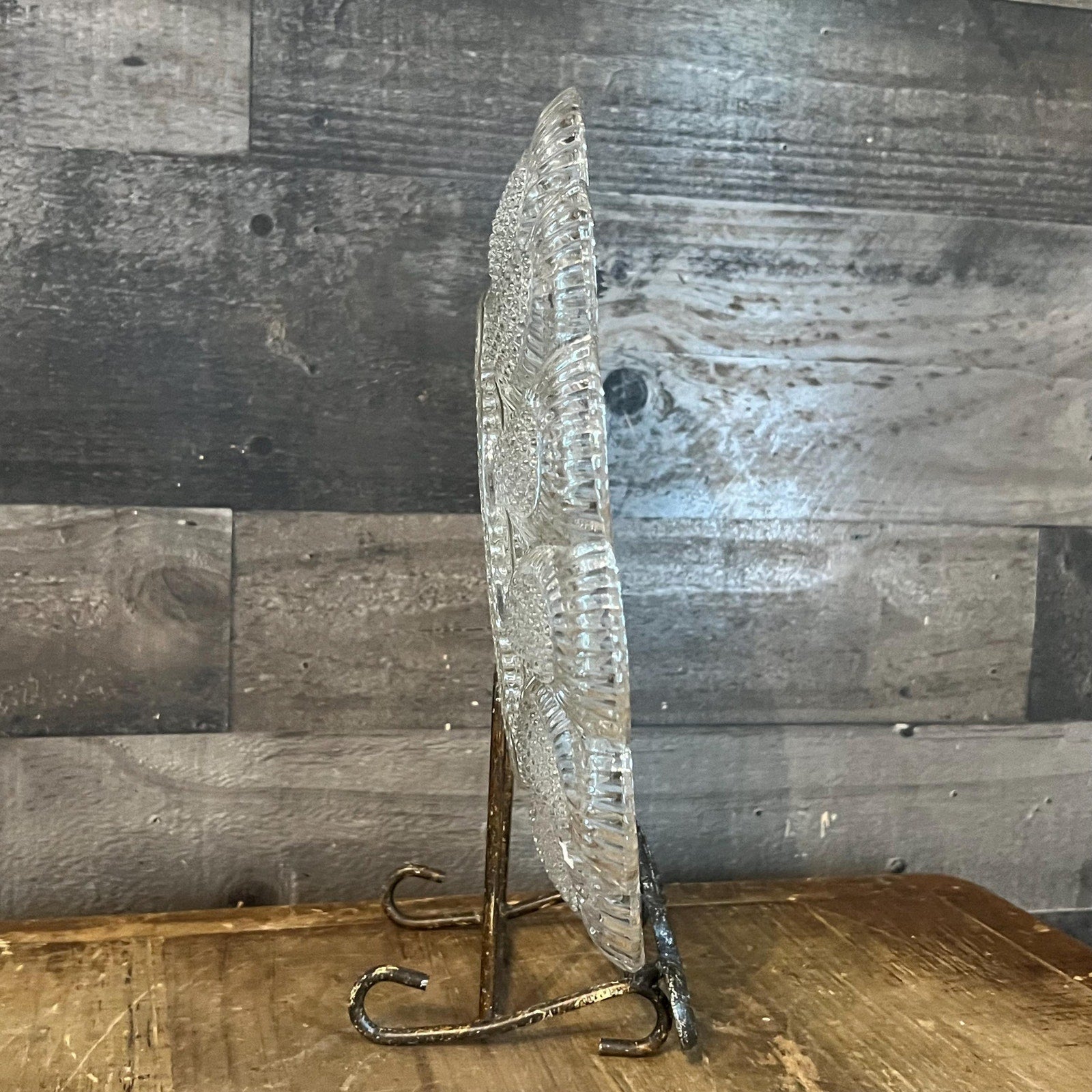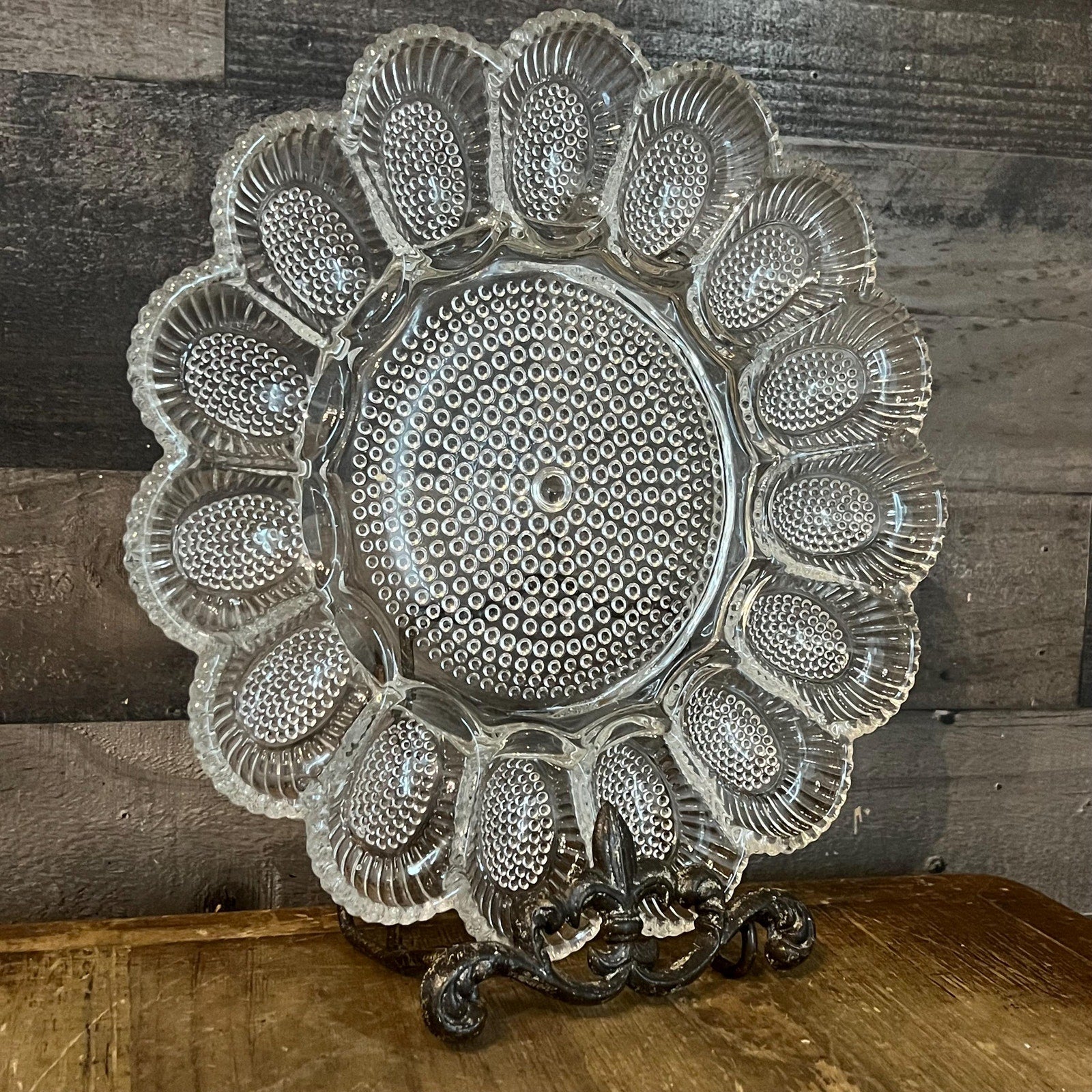 This Vintage Indiana Glass Hobnail Clear Glass Egg Serving Dish - Deviled Egg Server - Oyster Plate will look wonderful in your space! It’s perfect for serving up your favorite deviled egg or choice and makes a great oyster plate! Could be used as a jewelry organizer for your rings, earrings, charms, bracelets and necklaces as well! Measures about 11 1/4 inch wide x 1 1/2 inch tall