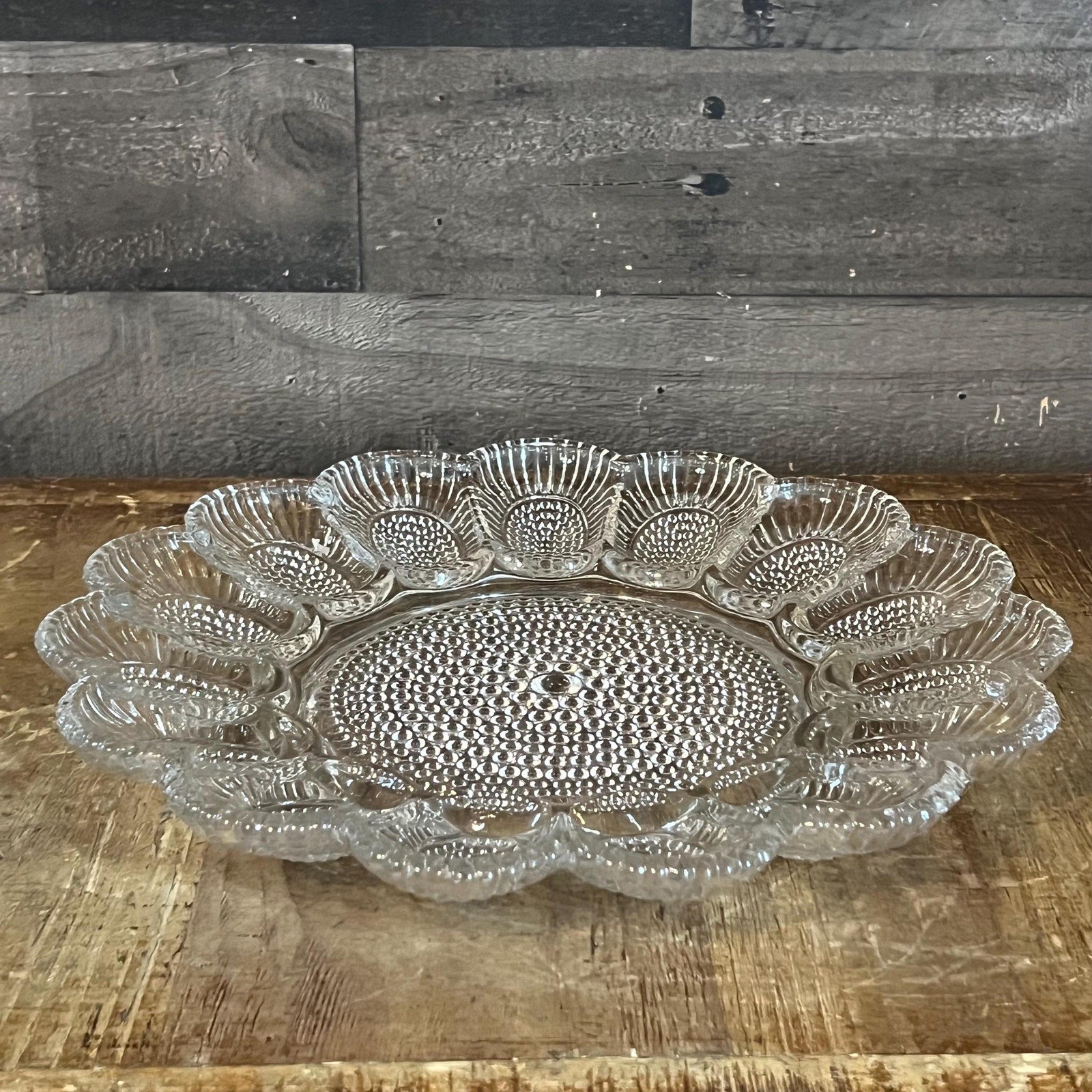 Vintage Indiana Glass Hobnail Clear Glass Egg Serving Dish - Deviled Egg Server - Oyster Plate