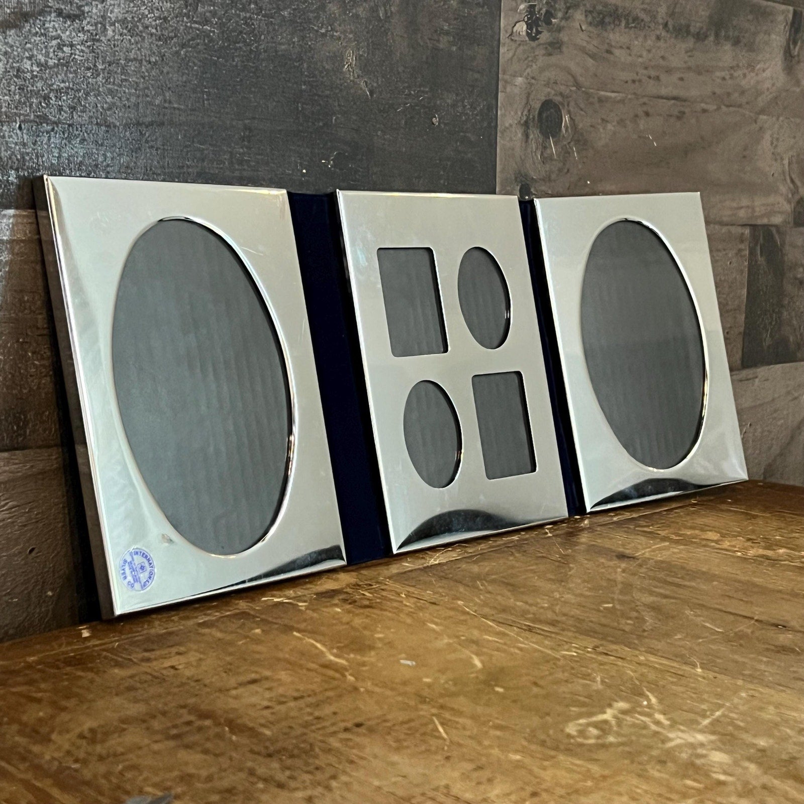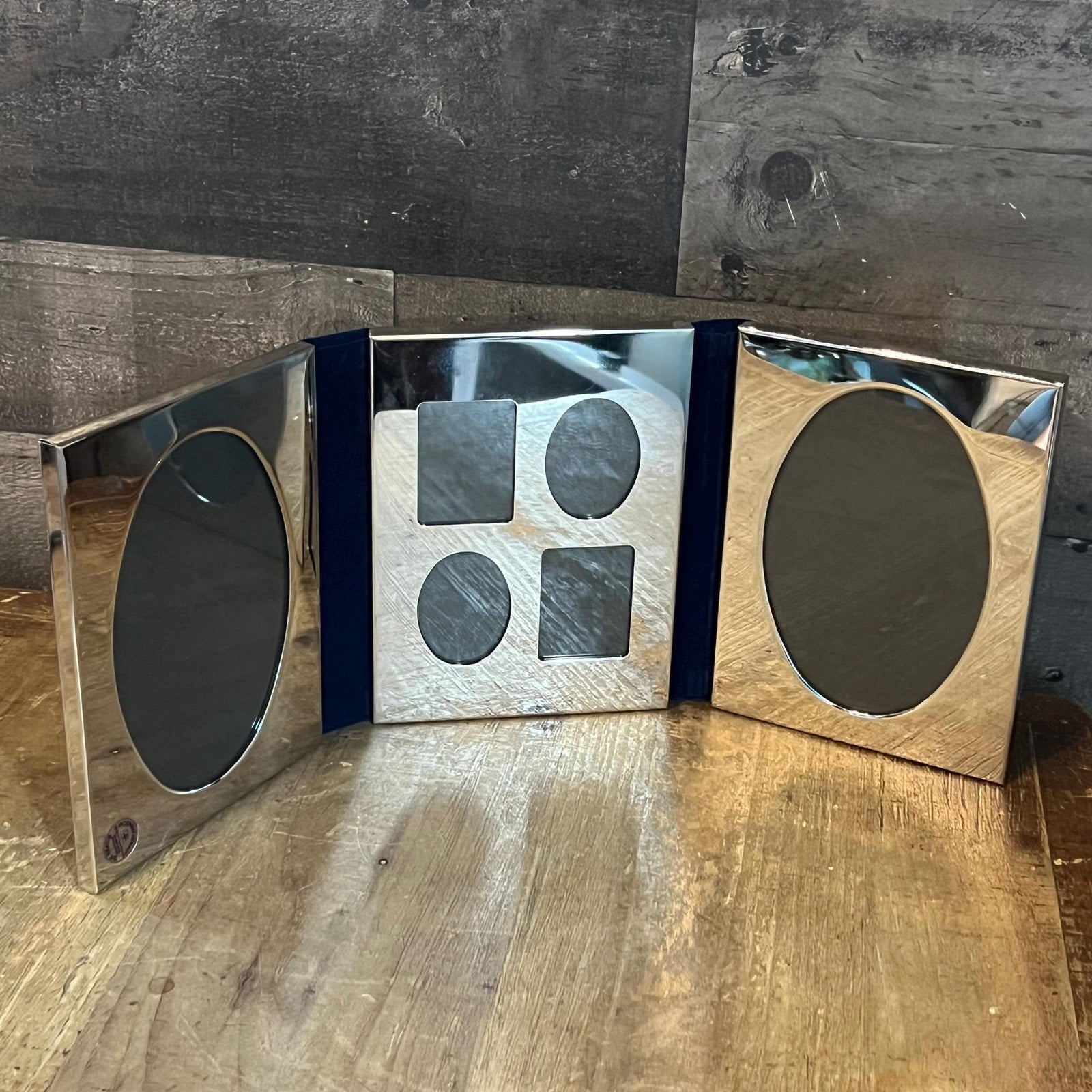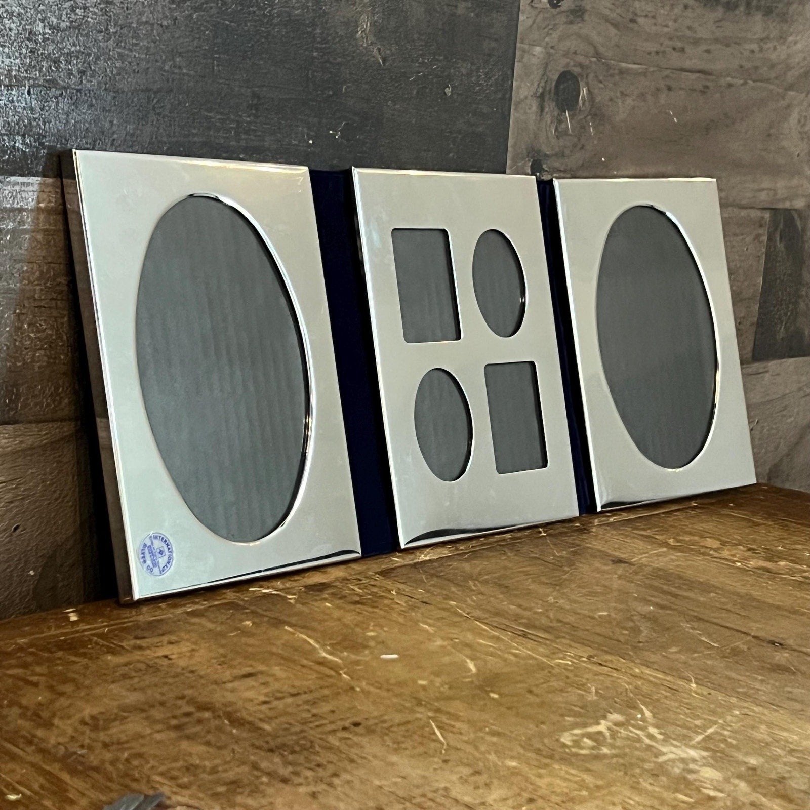 This Vintage International Silver Co Silverplated Tri Fold Picture Frame will look lovely in your space! Perfect for featuring a collage of your favorite photos to enjoy all in one space! Makes a great gift as well as being styled in your hallway, entryway, living room, office - the list goes on! Measures about 16 1/2 inch wide laid flat x 6 3/4 inch tall