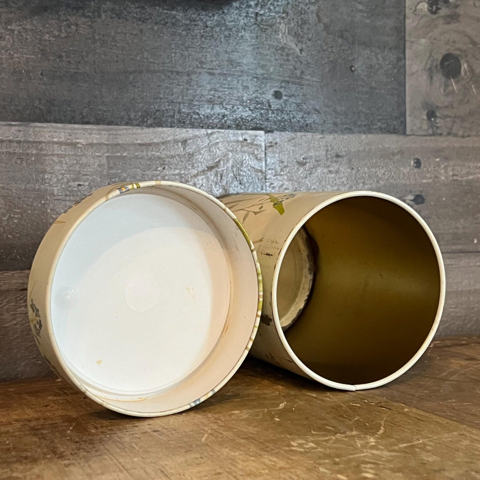 Vintage IRA Denmark Floral Cylinder Lidded Tin Jar
