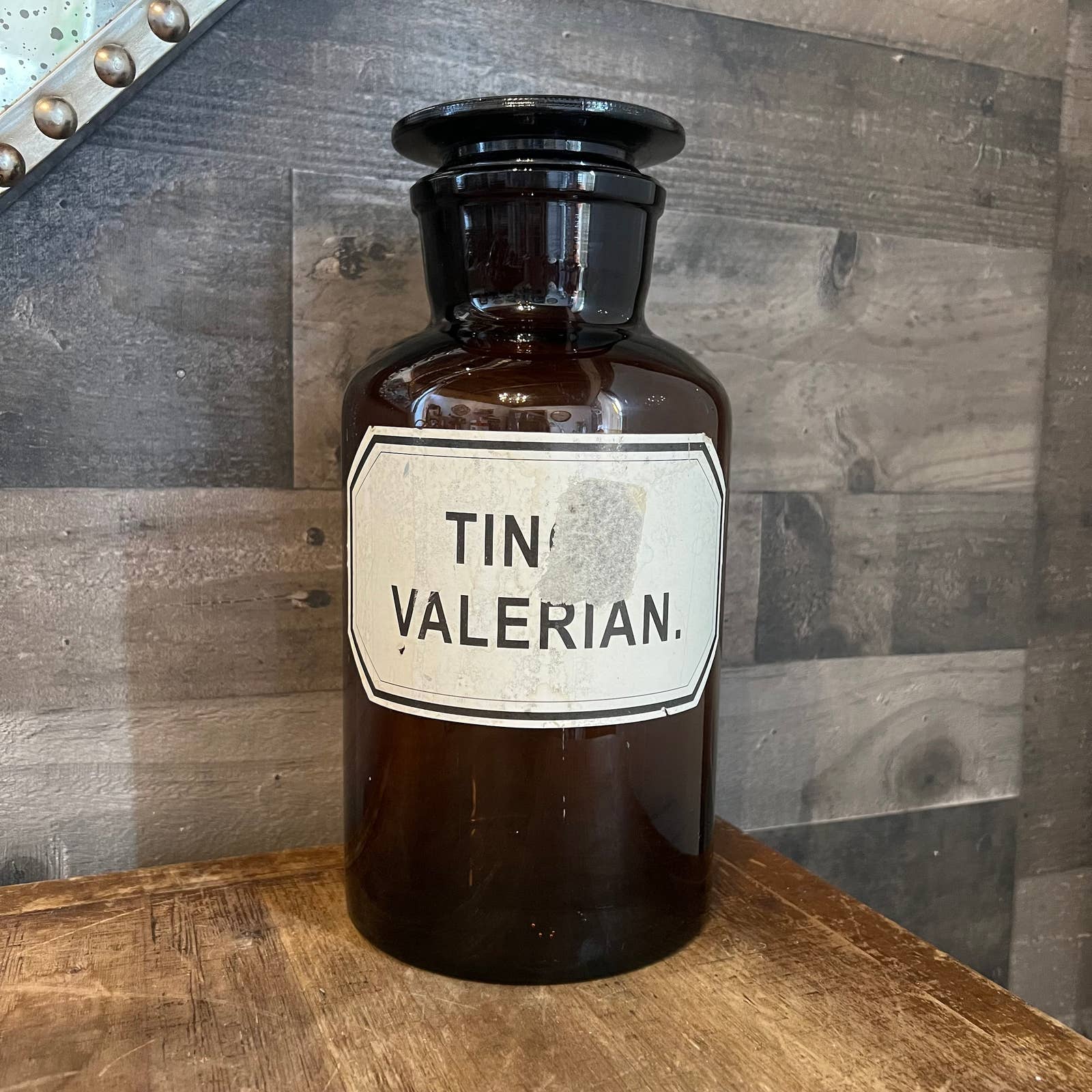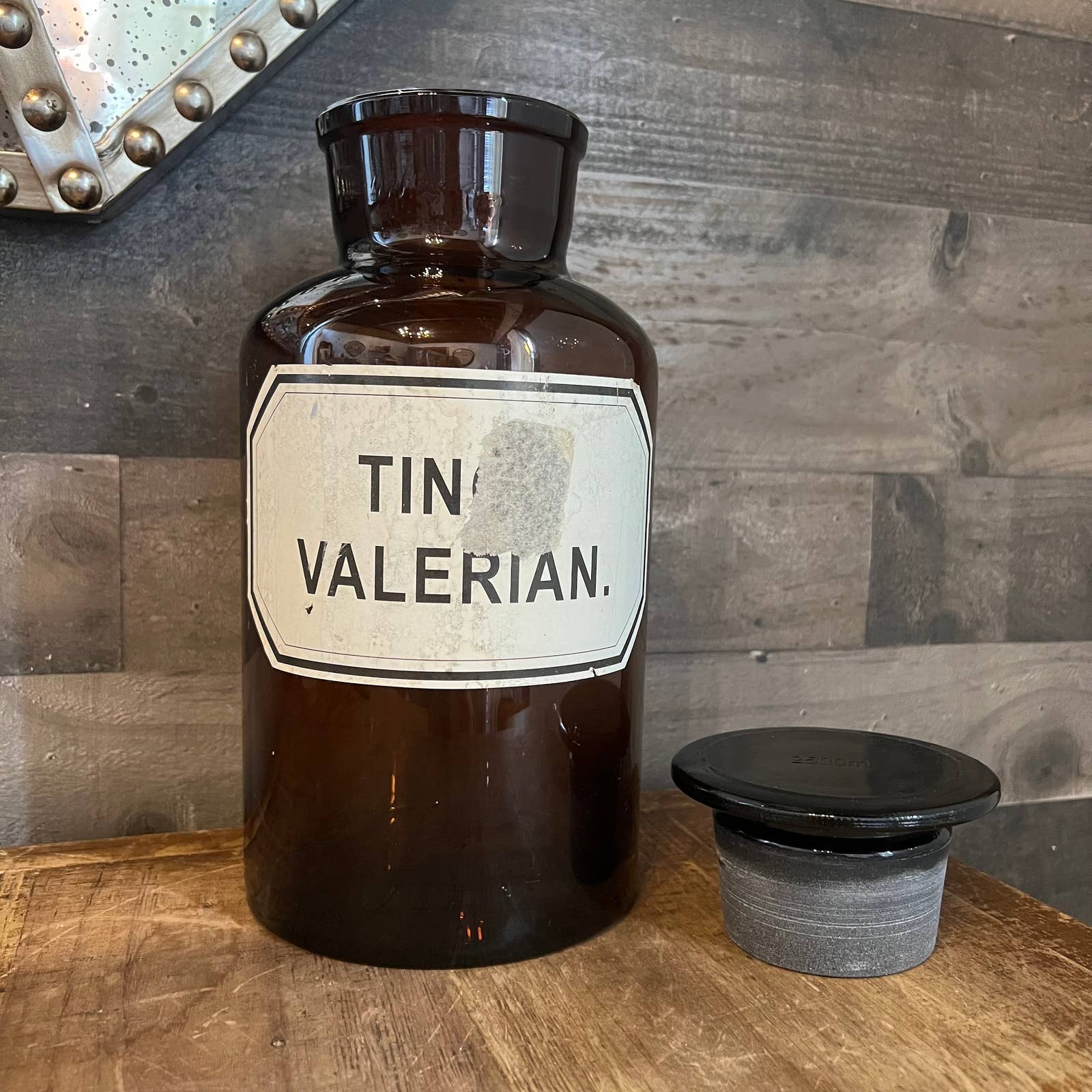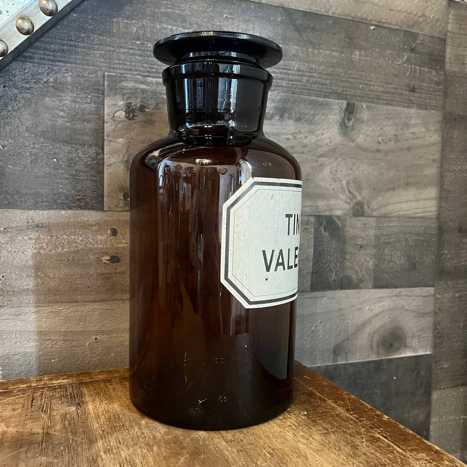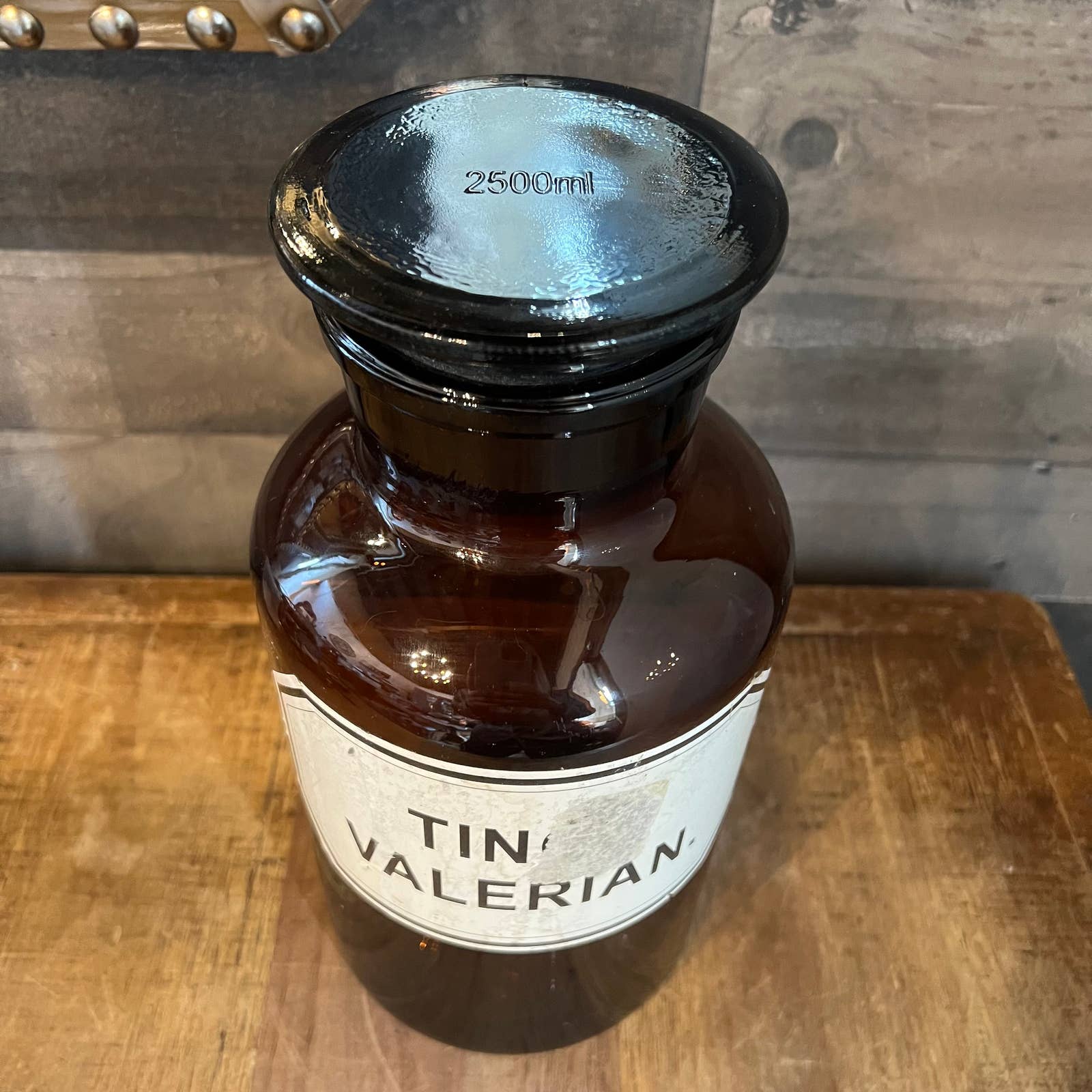 Vintage large brown glass apothecary bottle with stopper - Tincture of Valerian pharmacy bottle