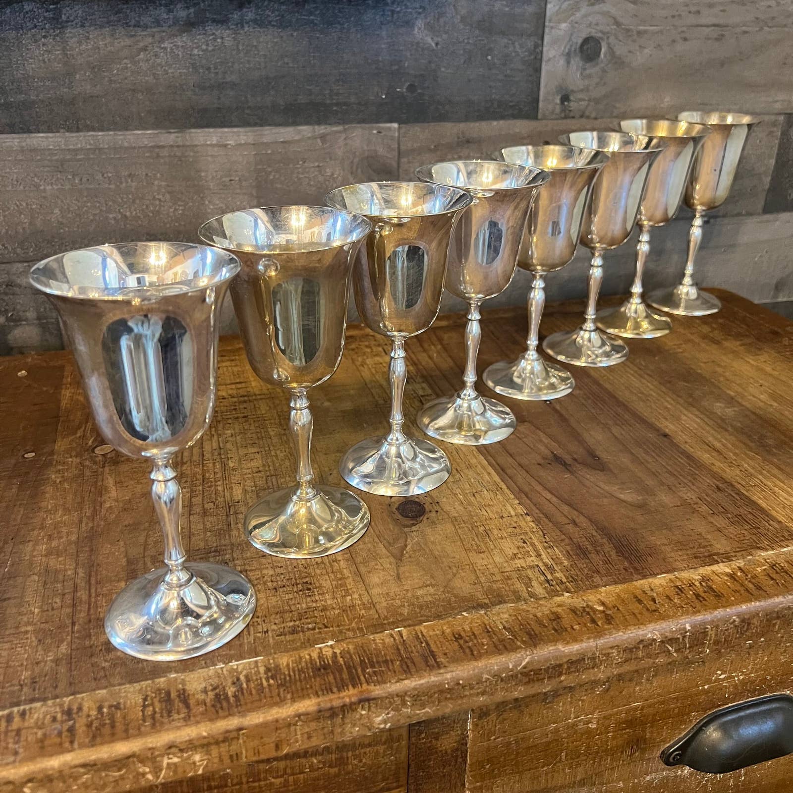 Vintage Leonard Silver Plate Goblet Glasses - set of 8