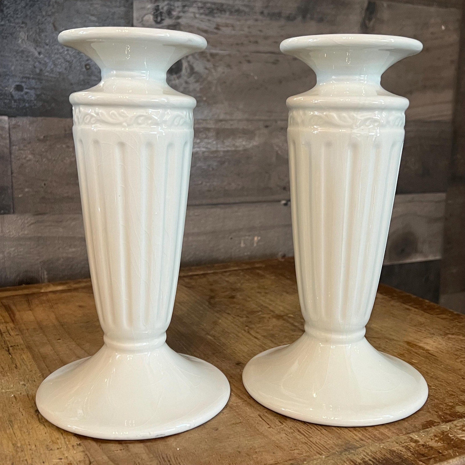 This pair of Vintage Mikasa Italian Countryside Earthenware Candlestick Holders will look amazing in your space! They’re wonderful for styling in your hallway, entryway, kitchen, dining room, office, bedroom, bathroom - the list goes on! Each candlestick measures about 8 inch tall x 3 1/4 inch wide top x 4 1/4 inch wide base. We have 2 pairs available - please choose your quantity at checkout! Each candlestick has some crazing - pictured - you will absolutely love the character their aged look brings!