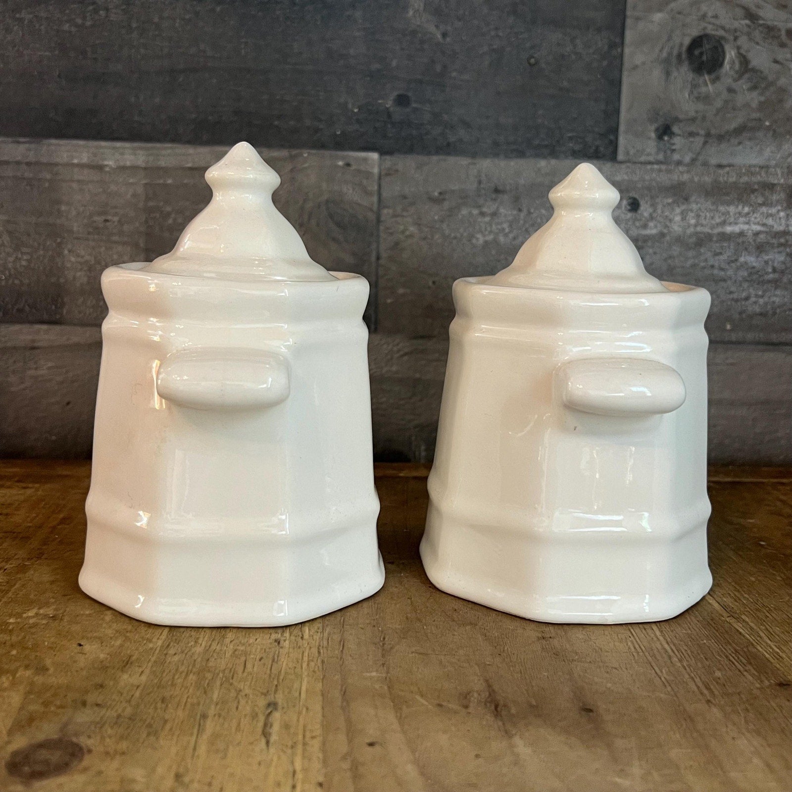 This pair of Vintage Pfaltzgraff Heritage Sugar Bowl With Lids will look lovely in your space! They also make a wonderful decor piece, salt pinch, jelly server, condiment server and more! Each measures about 5 3/4 inch tall x 4 1/2 inch wide with handles x 3 1/2 inch deep