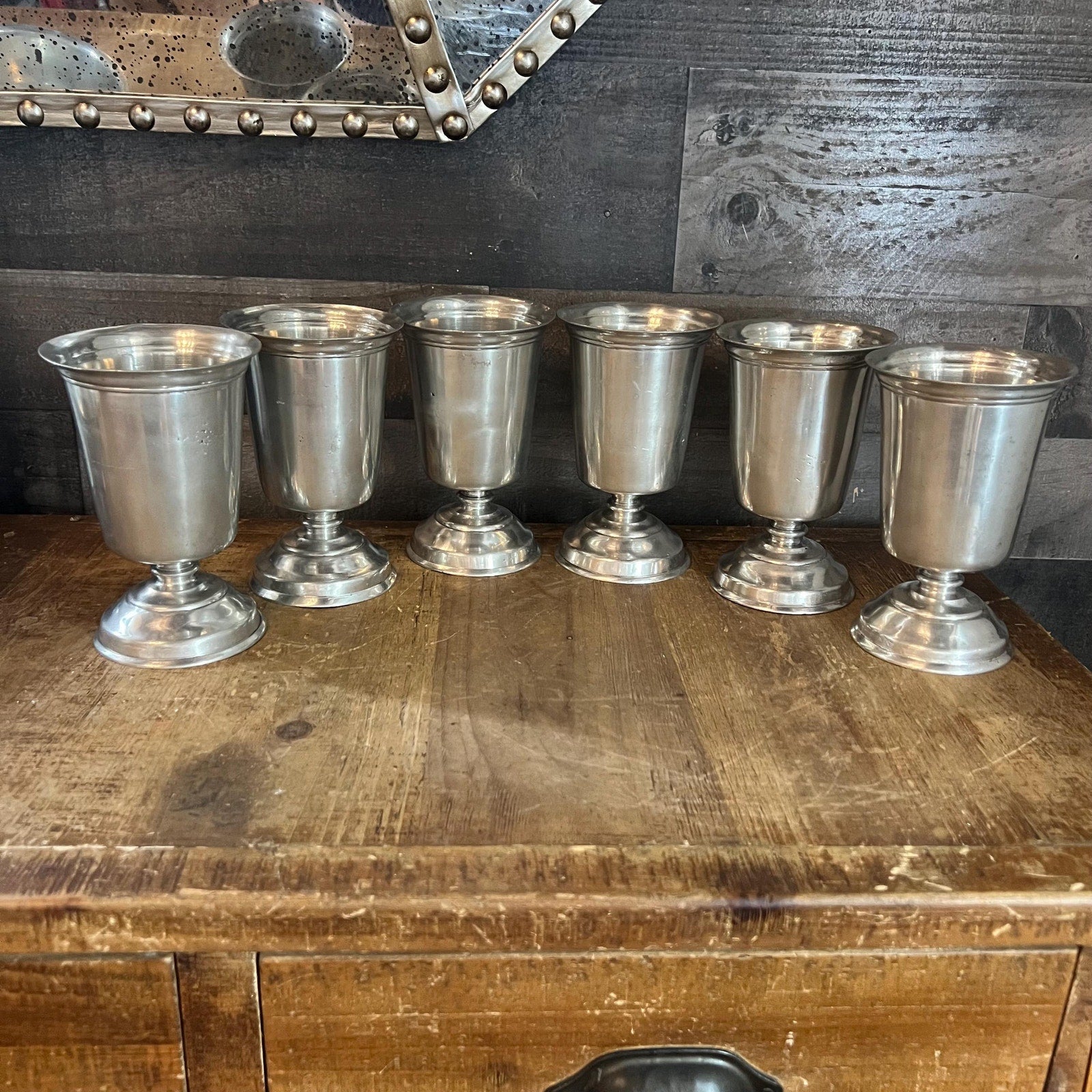 Vintage Pewter Short Stem Goblets - Set of 6