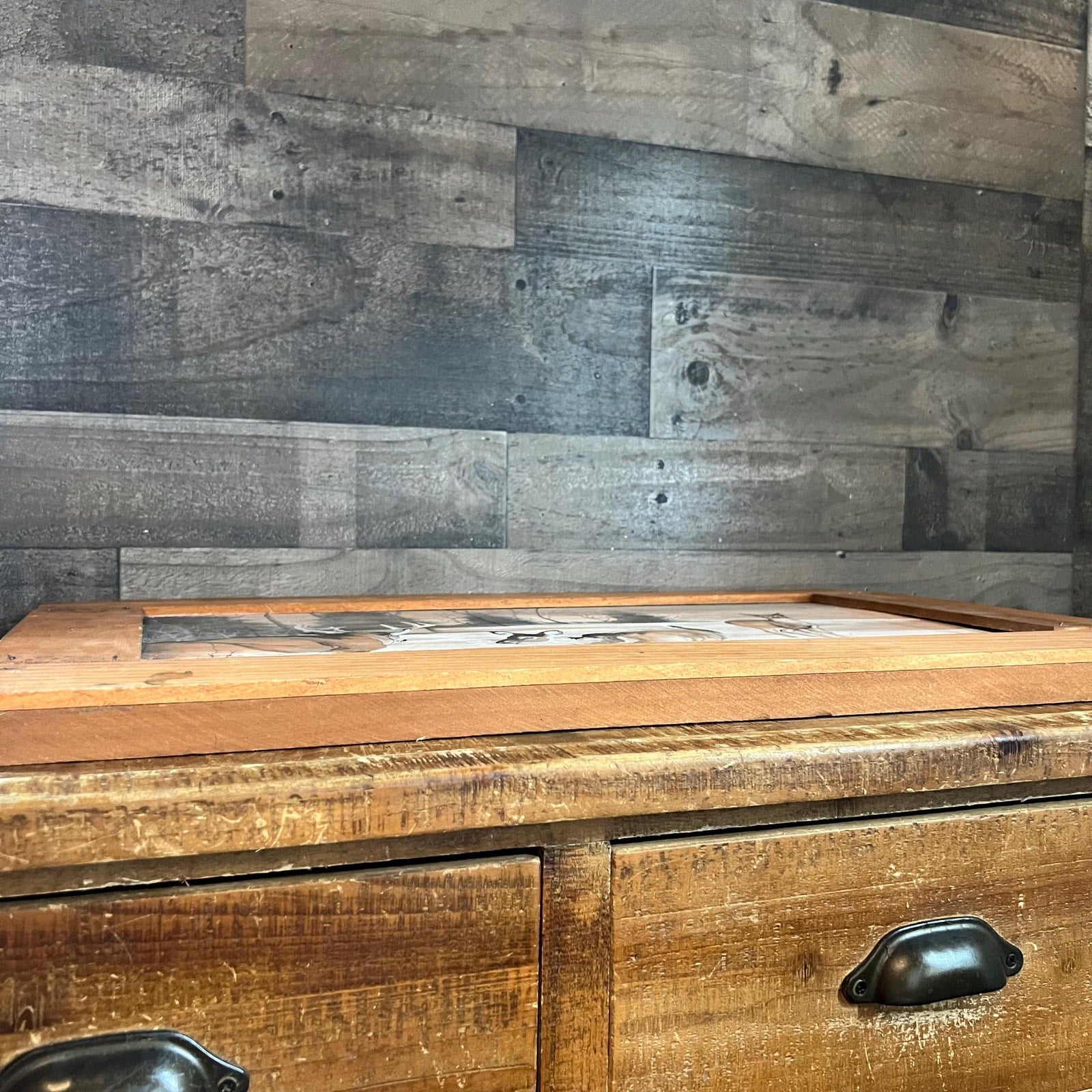 Vintage Rectangular Rustic Painted Wood Winter Forest Deer Scene