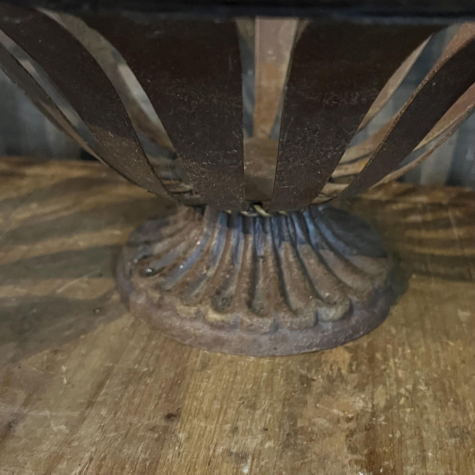 These Vintage Rustic Metal Footed Planters - Pair will look amazing in your space! Perfect for showcasing your favorite plants of choice! Each have a nice heavy weight to them! Each are round in shape with a braided rim accent along the edge. You will absolutely love the character their aged look brings! Each measures about 13 3/4 inch wide x 6 3/4 inch tall