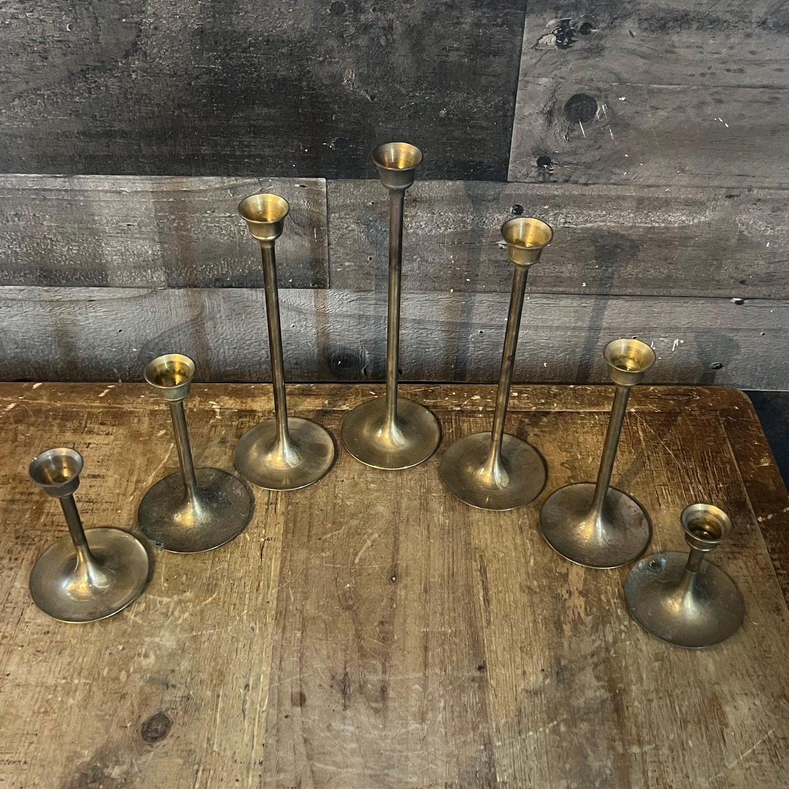 Vintage Set of 7 Brass Graduating Tiered Candlestick Holders