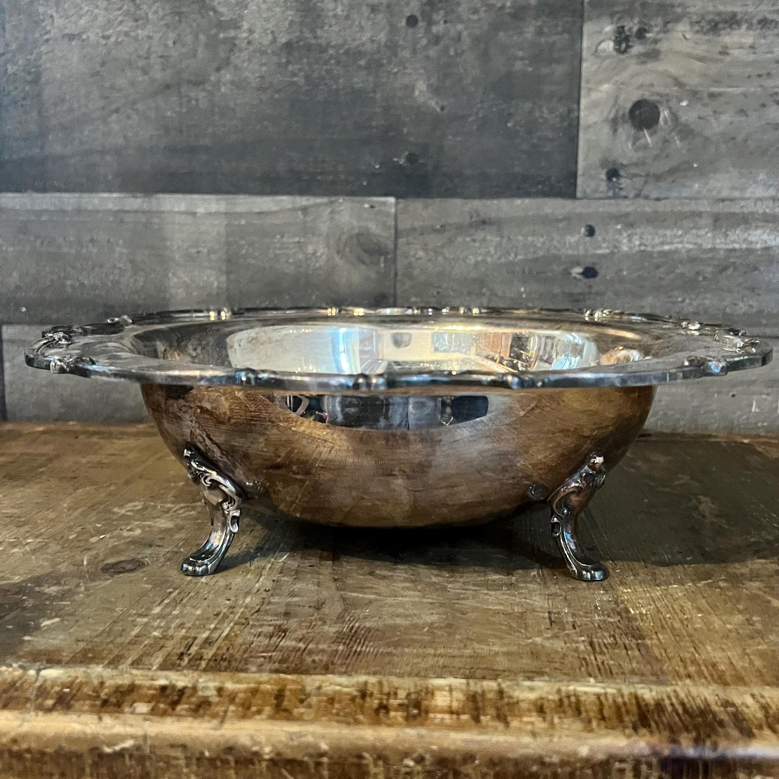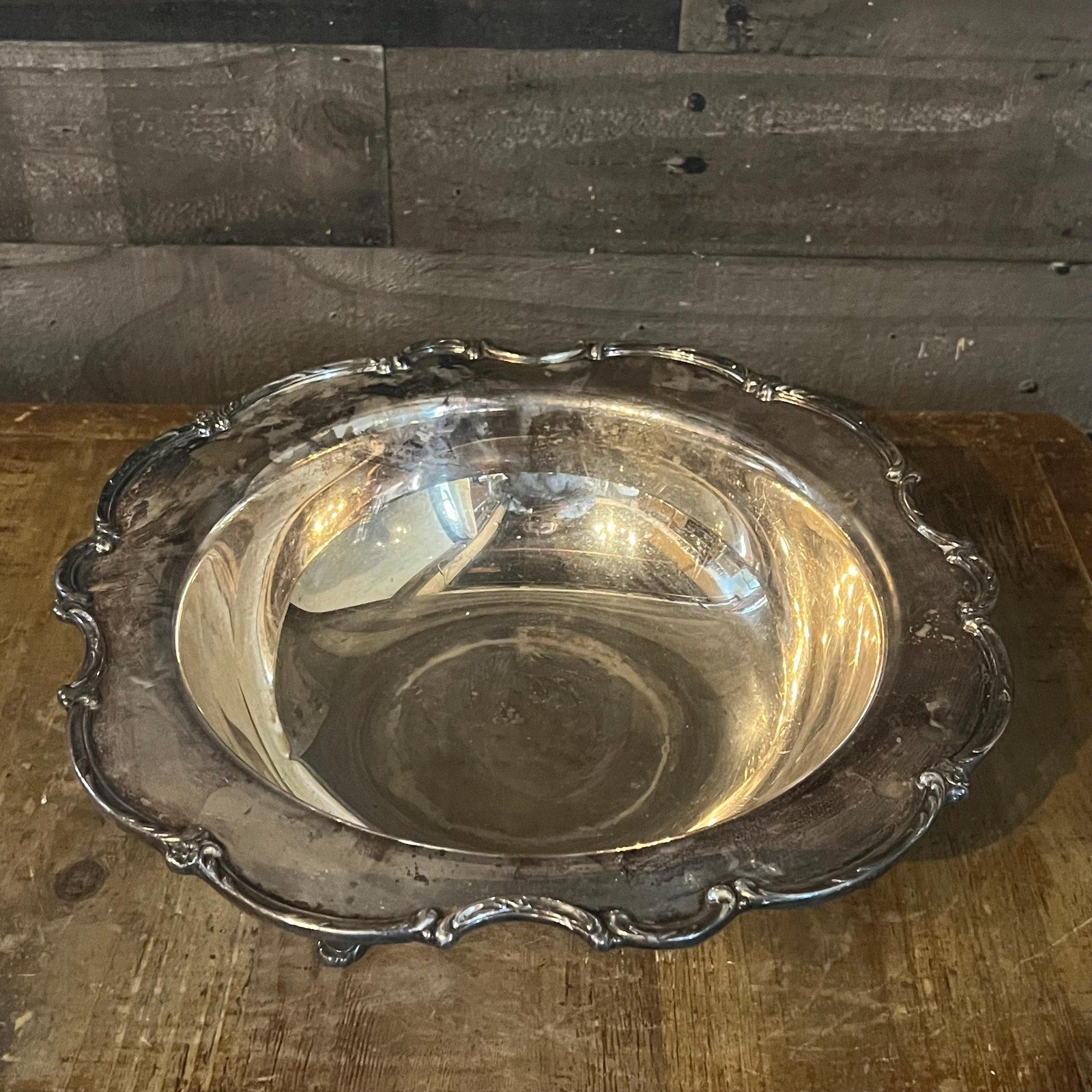 This Vintage Silverplated 1847 Rogers Bros Reflection Footed Bowl will look lovely in your space! Perfect for decor and serveware purposes. Use as a fruit bowl, catchall bowl and purse bowl as well! Measures about 12 inch wide x 3 1/4 inch tall