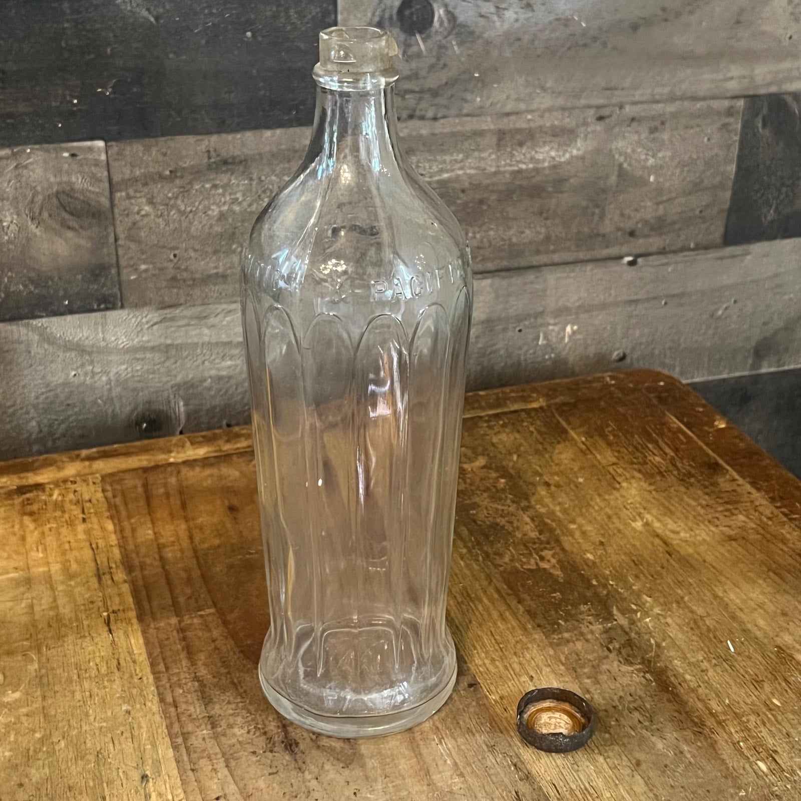 This Vintage The Great Atlantic and Pacific Tea Co Clear Glass Bottle with twist on / off lid will look lovely in your space! Measures about 10 1/4 inch tall x 3 inch wide