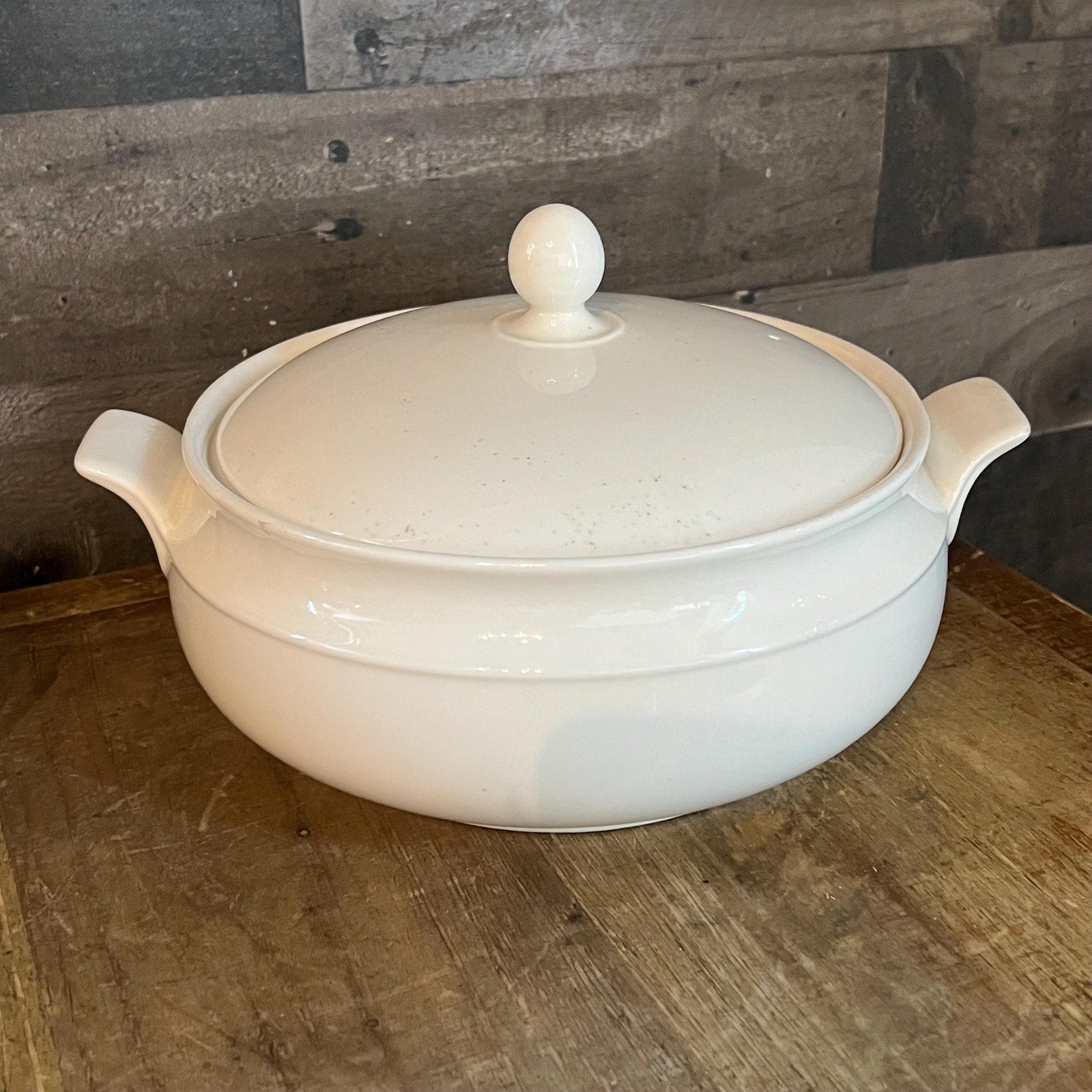 White Round Handled Lidded Casserole Dish - Vegetable Dish