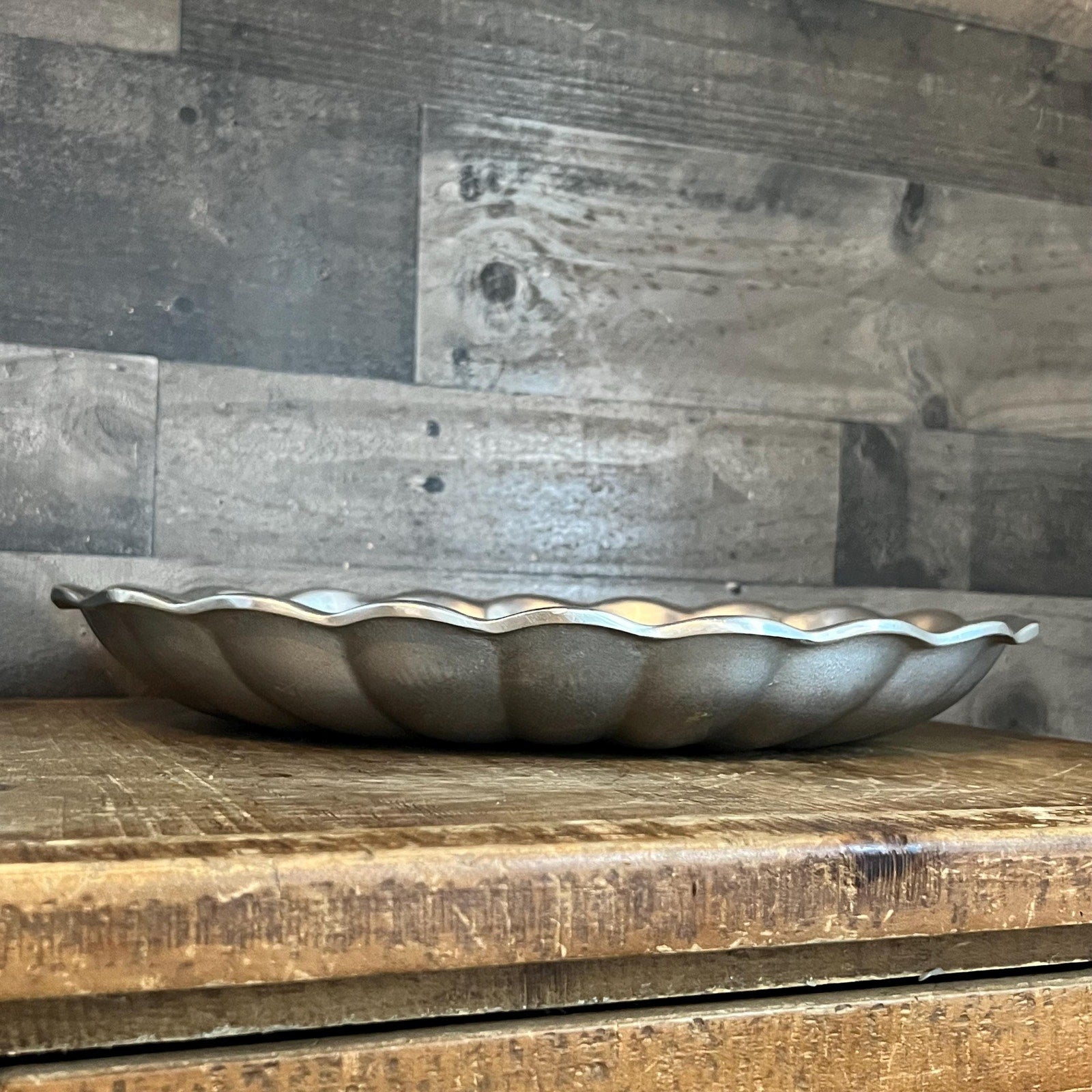 This Wilton Mount Joy PA USA Scallop Rim Oval Platter Dish will look wonderful in your space! Perfect for serveware and decor purposes! Use this in your hallway to display decor or as a catchall for keys, sunglasses and more, place your hand towels in your bathroom or kitchen, serve charcuterie, fruit vegetables, chips and dip - the list goes on! Measures about 14 1/2 inch wide x 10 1/2 inch deep x 2 inch tall